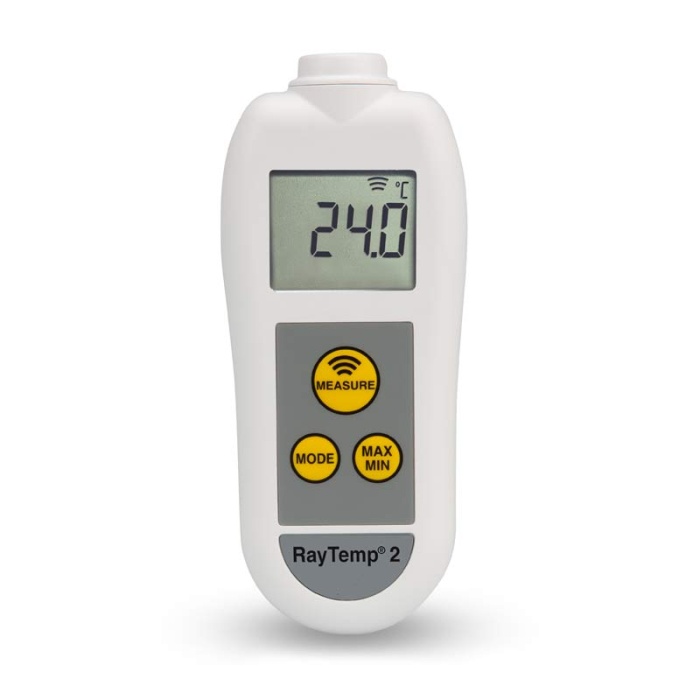 De RayTemp 2 is een precisie infrarood thermometer met een nauwkeurigheid van ±1 °C over het bereik van 0 tot 100 °C. Deze infraroodthermometer wordt standaard geleverd met een herleidbaar certificaat.