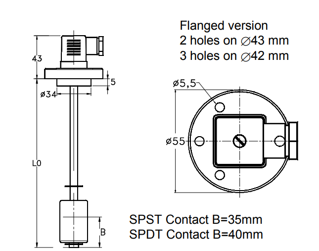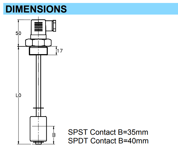 Niveauschakelaar met 1 elektrisch contact, betrouwbaar, compact en eenvoudig te installeren.