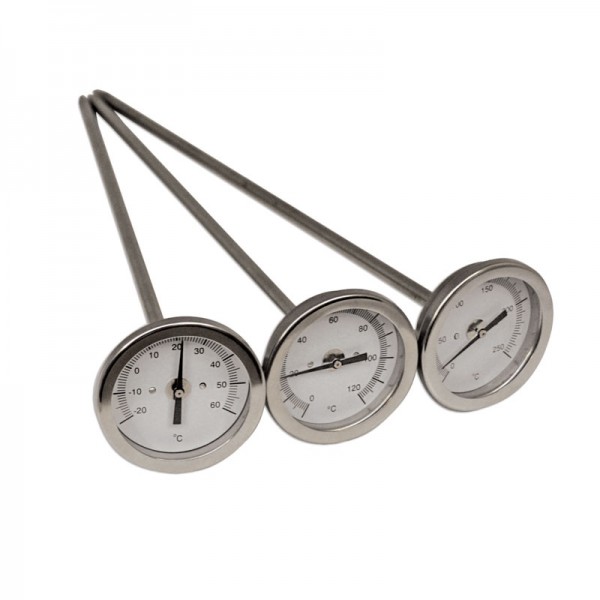 Stevige bimetaal wijzerthermometers. Eenvoudig in gebruik, maar betrouwbaar en nauwkeurig.